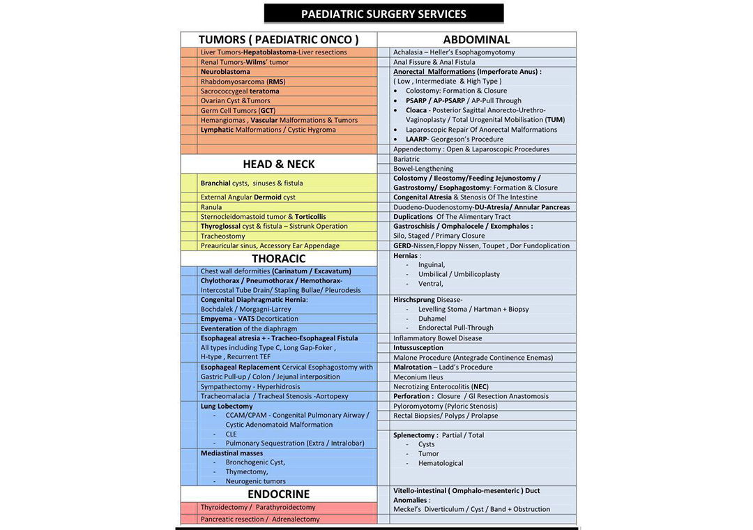 Our pediatric surgical team specializes in a wide range of procedures tailored to infants, children, and adolescents. From routine surgeries to complex interventions, we ensure the highest quality care for your child's surgical needs.